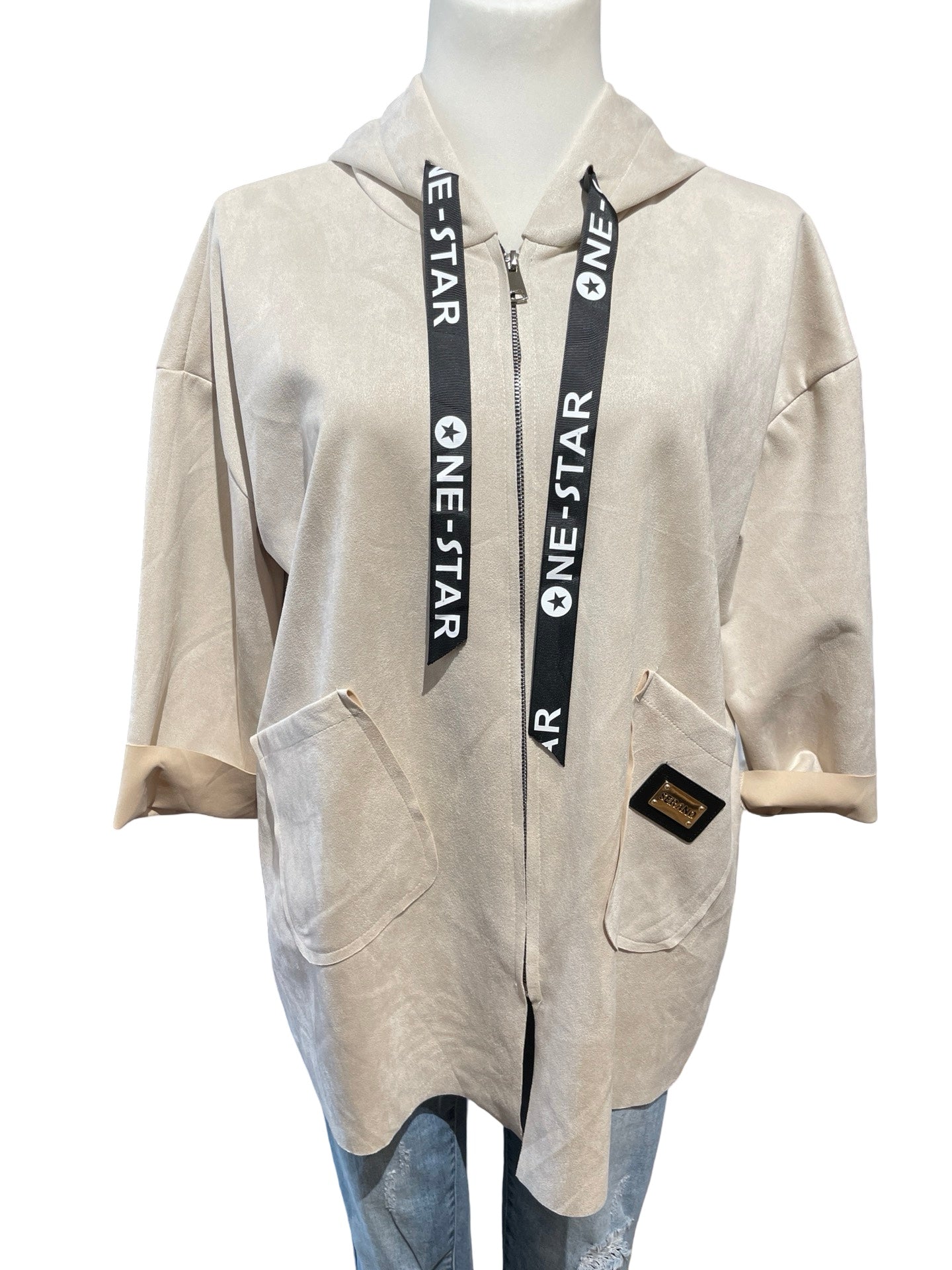 Schöne Übergangsjacke in Velouroptik. Mit Kapuze und Reißverschluß.