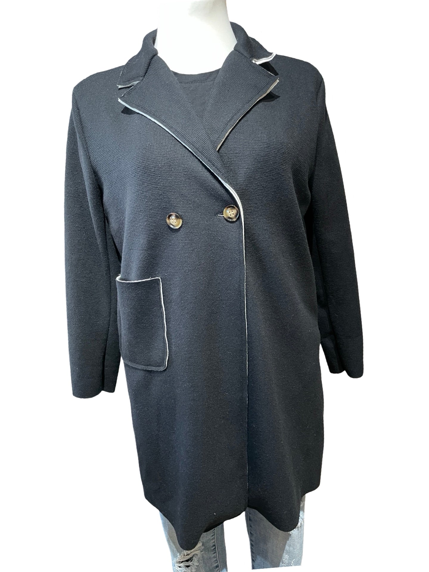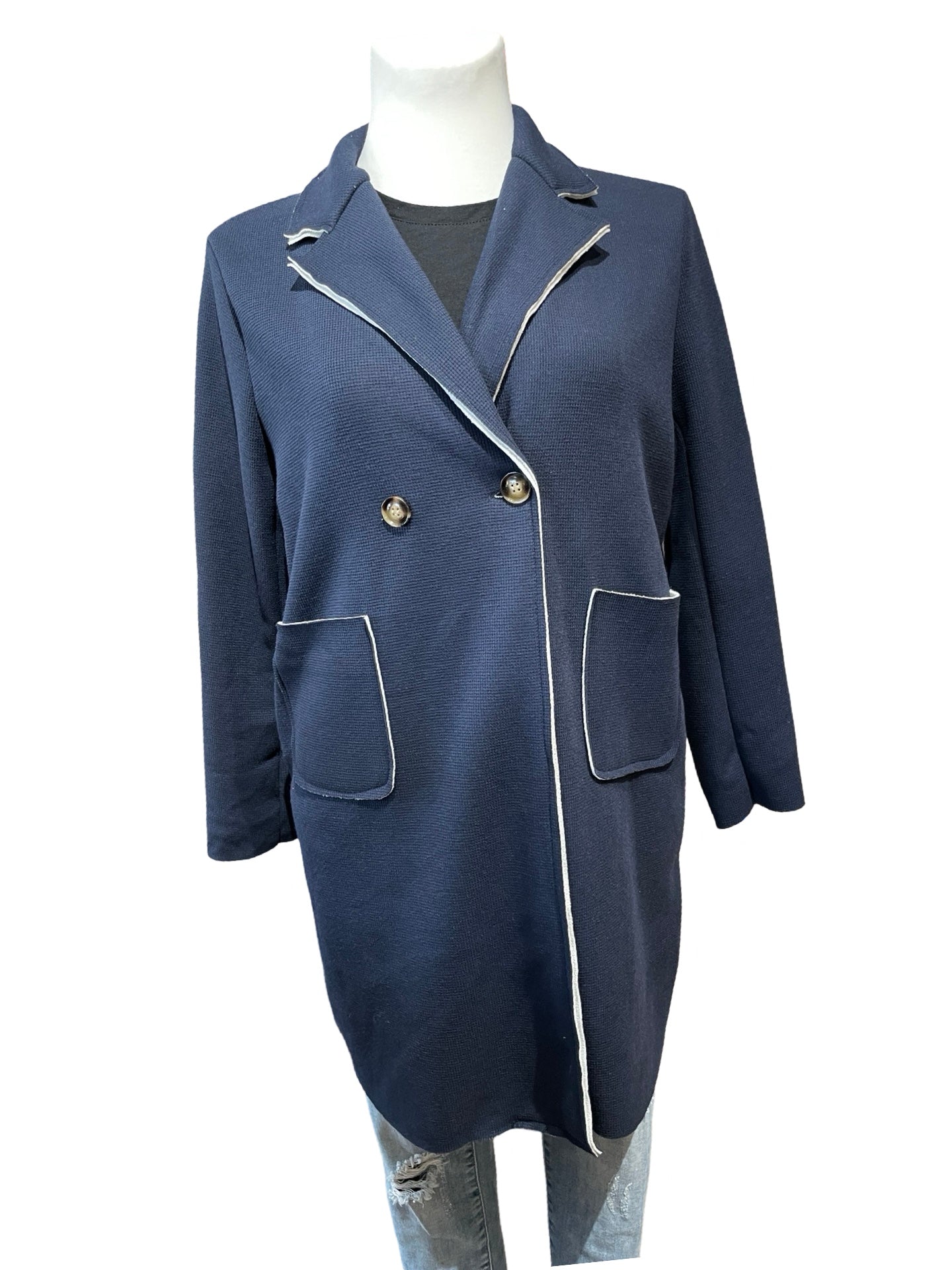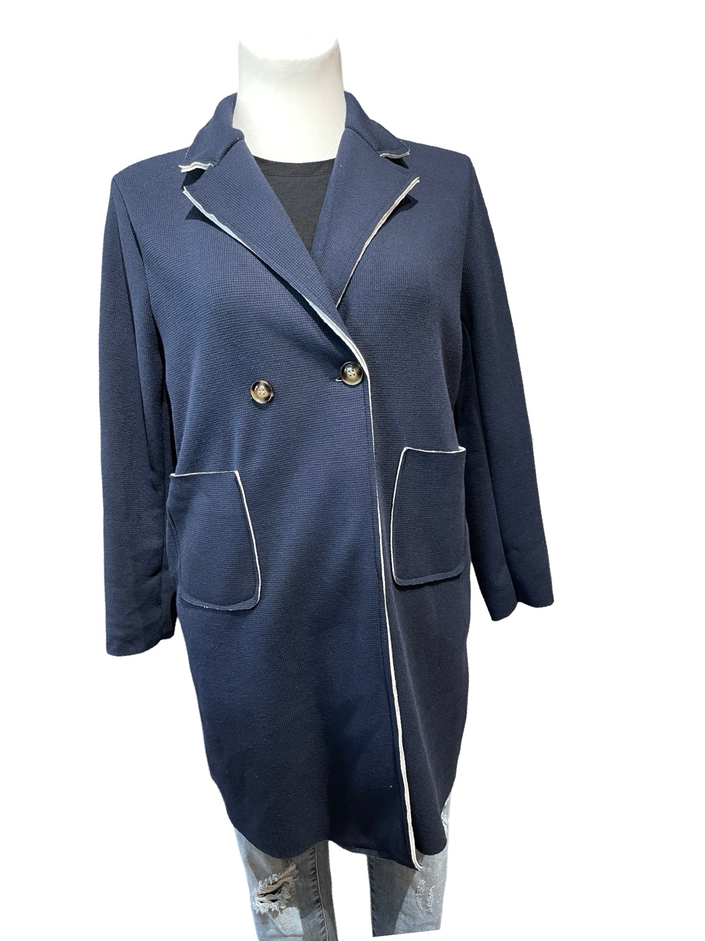 Mantel in Riffel-Struktur. Mit aufgesetzten Taschen. Innen weich unterlegt.