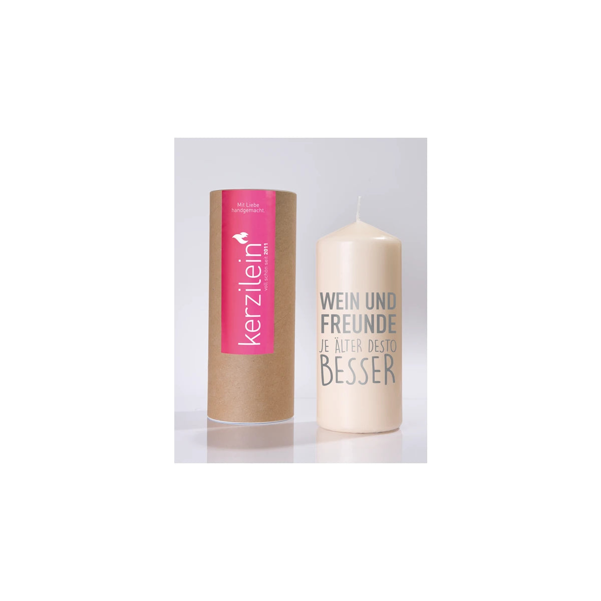 FaS725 Kerze grau "Wein und Freunde, je älter desto besser"