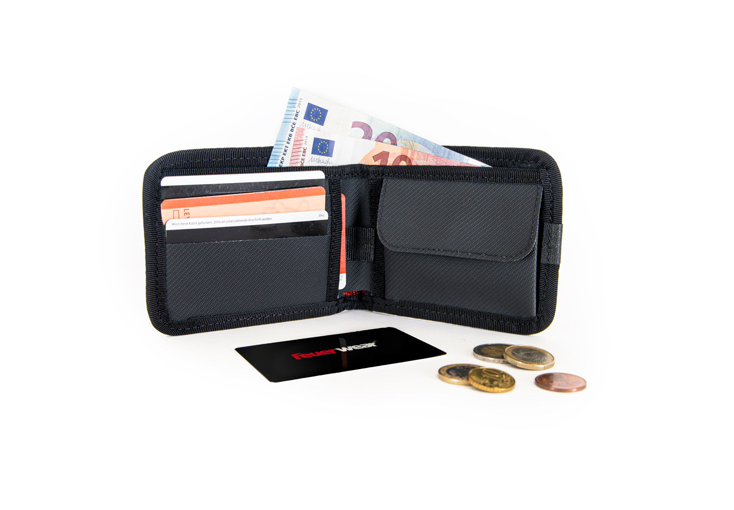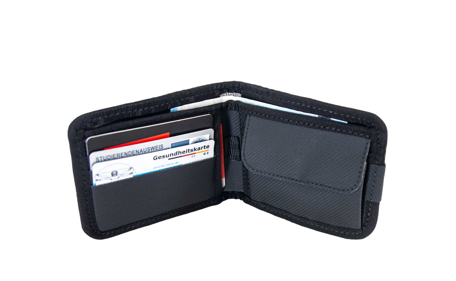 - Ausstattung innen: Scheinfach, Münzfach, 3 Kartenfächer, ein Karteneinsteckfach mit Rausziehlasche (für max. 4 Karten)