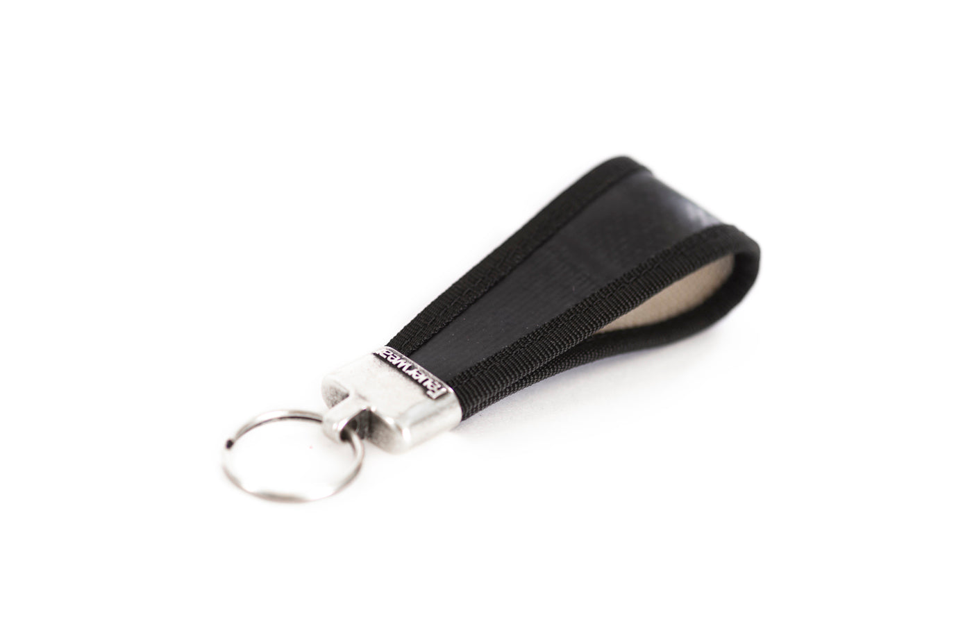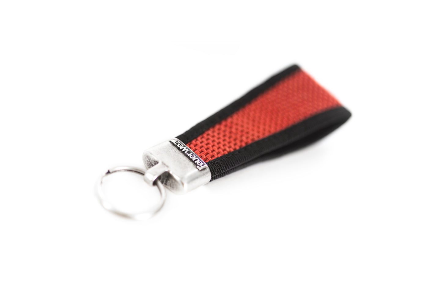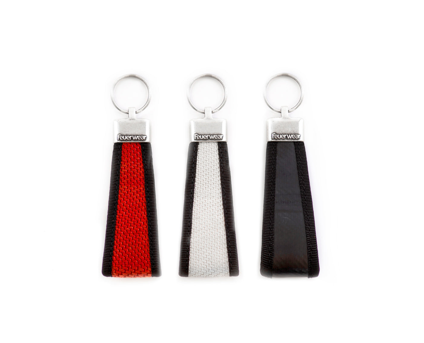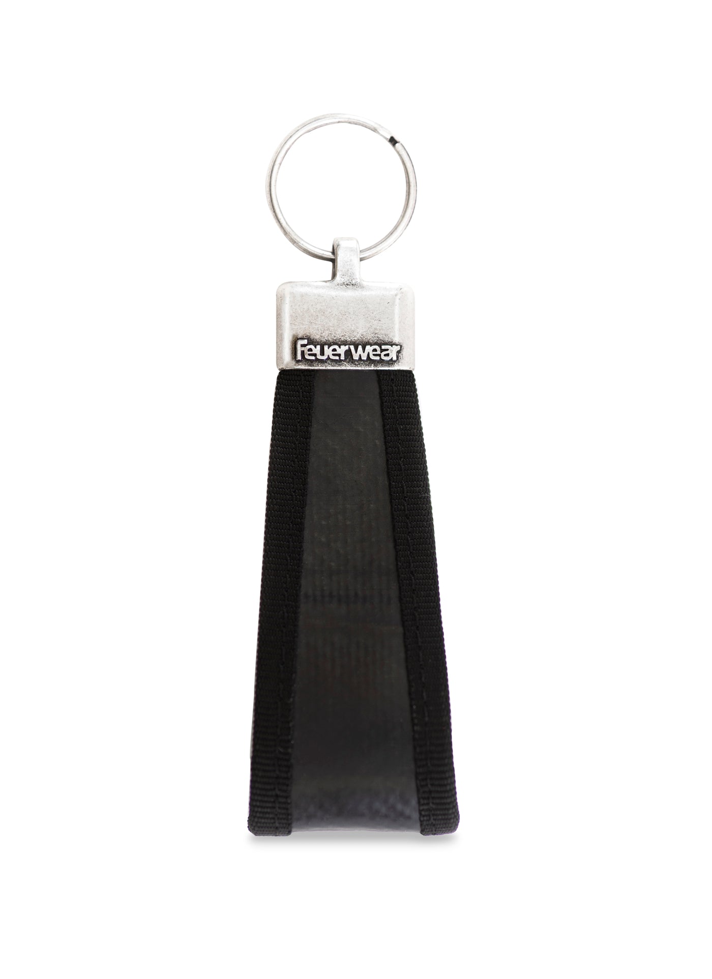 - Ausstattung allgemein: Eingefasste Schlaufe aus Feuerwehrschlauch mit Metalllaccessoire und Schlüsselring