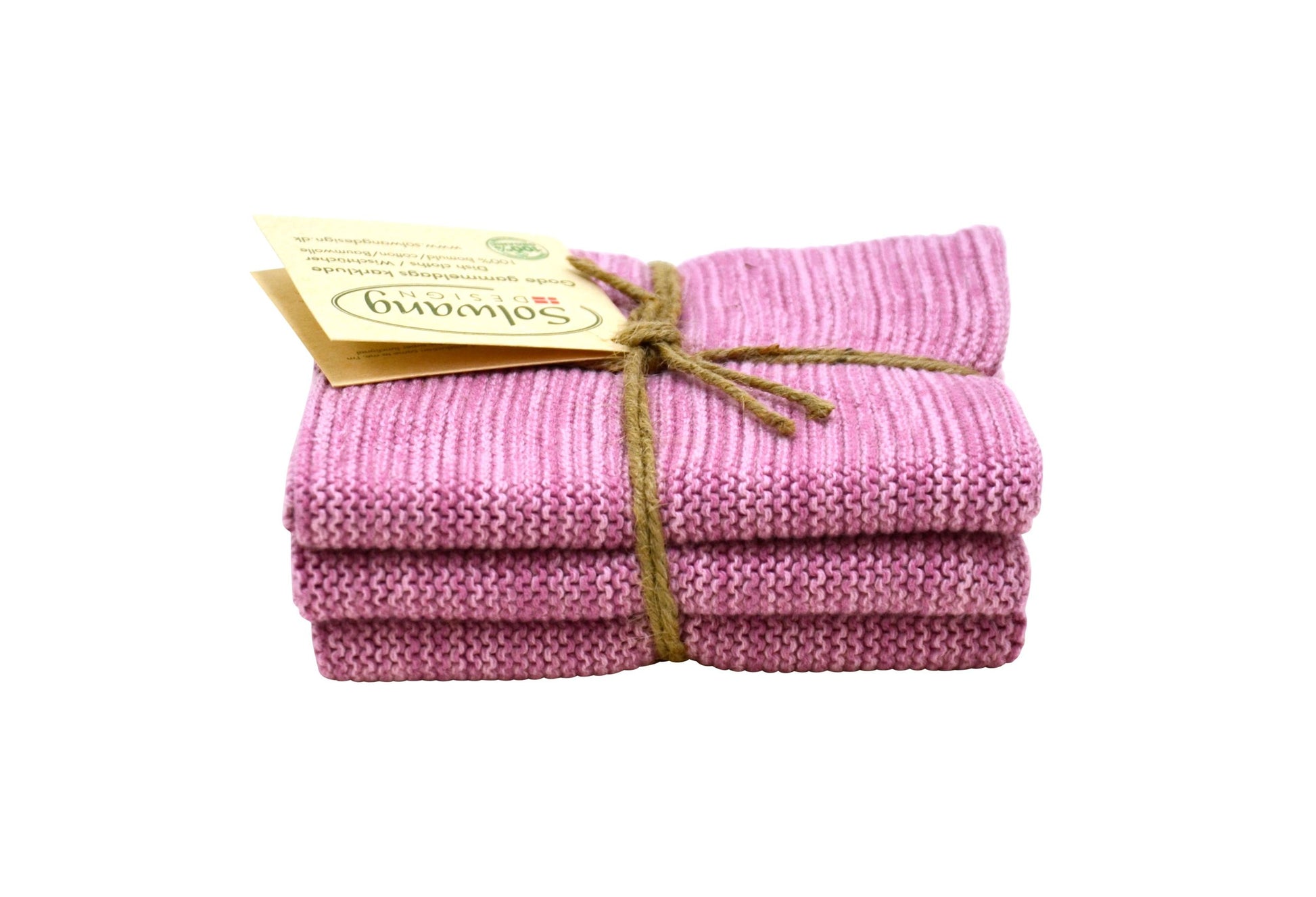 3 Stück gestrickte BIO Wischtücher. Die Wischtücher sind in Krausrippe gestrickt, um die Saugfähigkeit und Funktionalität zu optimieren. Sie eignen sich sowohl zum Spülen als auch zum Putzen. Die Tücher sind ebenso hochwertig in der Qualität wie auch dekorativ, da es sie in sehr vielen Farben und Farbkombinationen gibt, also für jeden Haushalt das Passende. Größe: 25 x 25 cm. 100% BIO Baumwolle. Hautfreundlich. Waschbar bei 60 Grad. Vom Gesundheitsamt empfohlen.